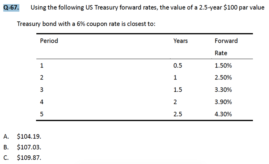 老师好,请问Q-67,这里的forward rate题干中并没有说明是一个区间的,比如说period 2对应的2.5%,不能理解为是从t=2开始,直到period 5结束这一段时间的forward rate吗?然后为什么在计算的时候要除以2?不是本来就半年的forward rate?