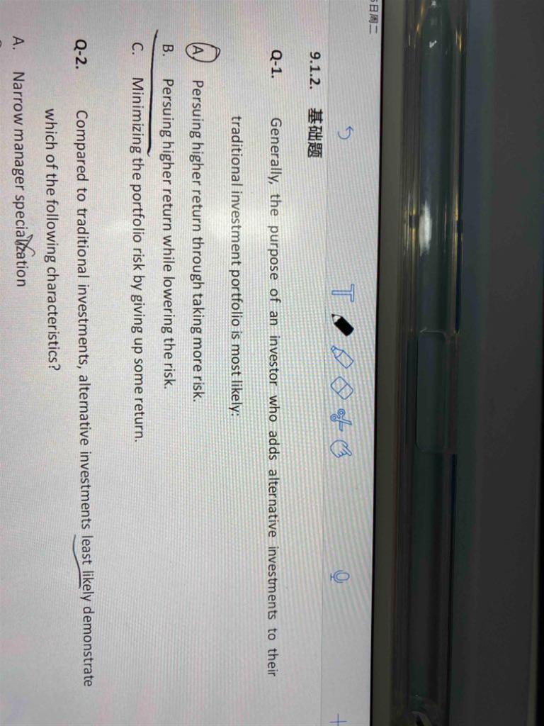 1题的话,不是有些另类投资也可能会增加风险的吗,为什么a不对