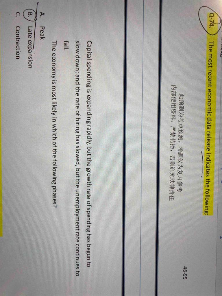 第三题 inventory sales ratio还是不太理解,这个指标上升不是可能是在衰退前期和复苏后期吗