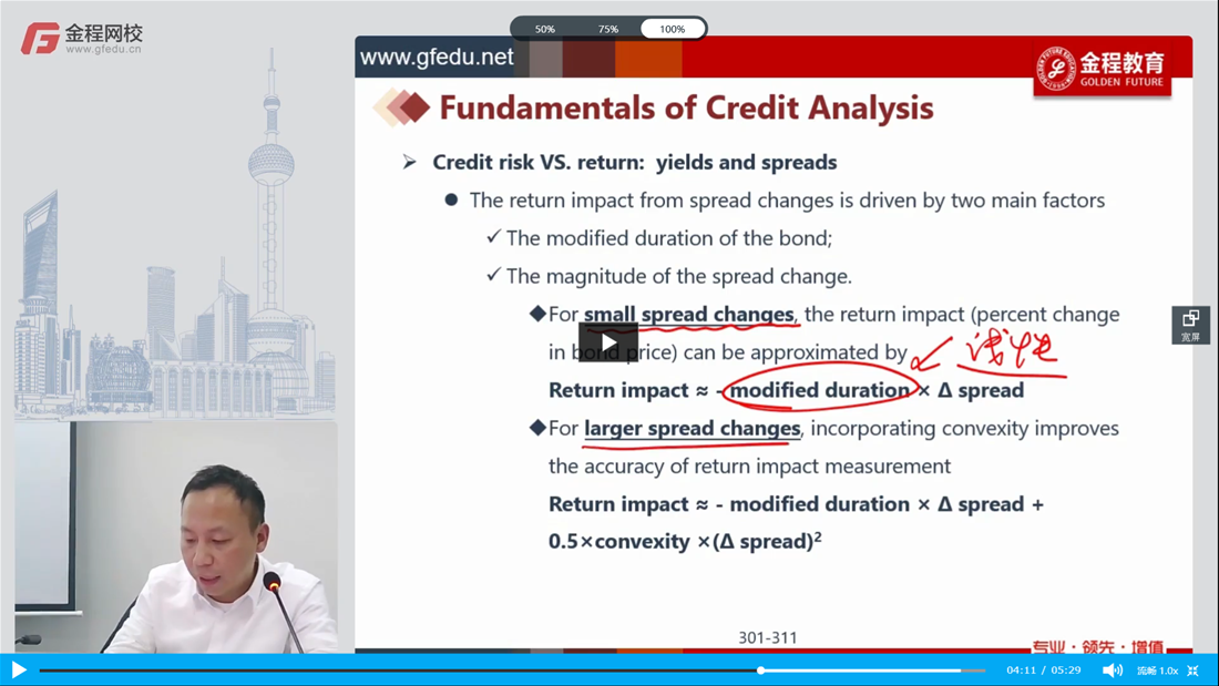 请问为什么large spread changes 会加上convexity effect,如果large spread change是让yield增加,那price相差也不大。如果是yield减少才会让price相差较大