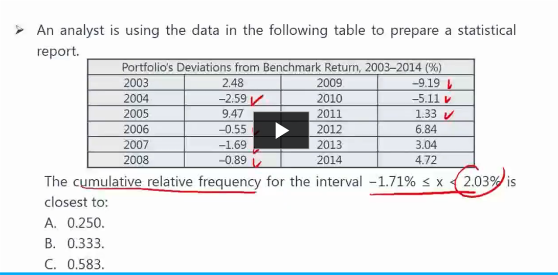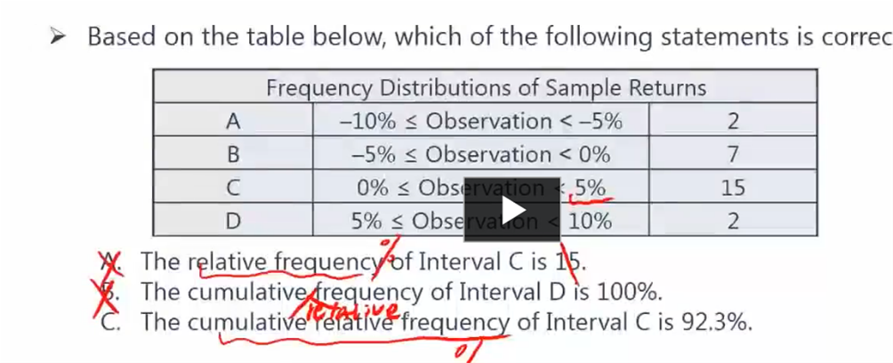 老师,这道题的B选项错误的原因就是因为缺少“relative”这个单词是吗?是说就没有cumulative frequency这种表达方式吗?