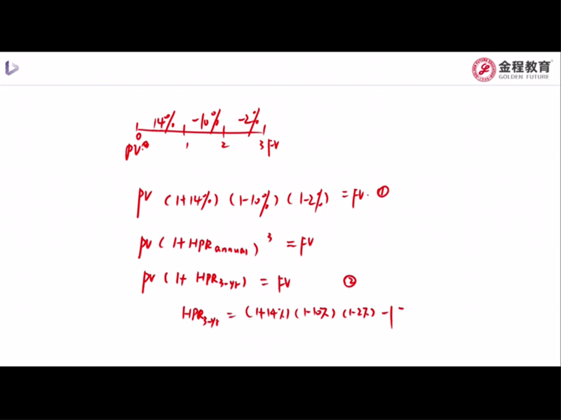 老师,图中这道题,HPR是持有期收益率的概念,这道题问的是over the 3 years ,虽然问的是这3年的收益率,但是因为HPR非年化概念,因此我们要将这三年看成一个整体计算,这样理解对吗?