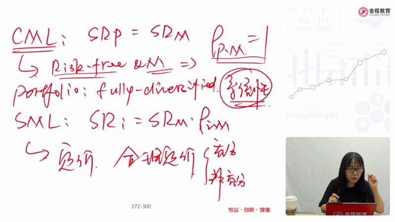 请问这里单老师说CML线上是都已经充分分散风险的资产,所以组合P和M是的夏普比例是一致的,但是后面讲到业绩衡量涉及资产是非充分分散风险的资产,又说要用含有系统风险又含有非系统风险的总风险的CML的夏普比率来衡量这两点是否矛盾了?