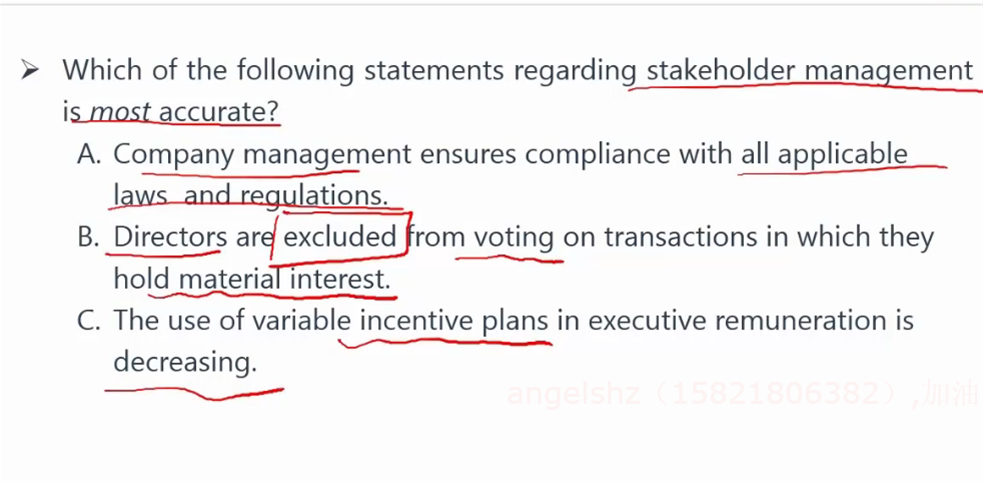 老师,这道题的A选项的管理层确保符合所有适用的的法律规则为什么这种说法不对?