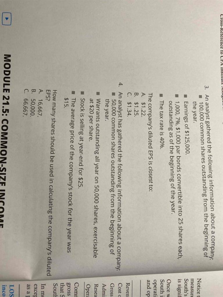 第三题 不是应该是 basic eps1.25 算出来的diluted eps1.336 然后大于basic eps 所以是1.25吗,和答案的解析不太一样嘛 第四题为什么是b,这个价格不是小于25就会行权吗