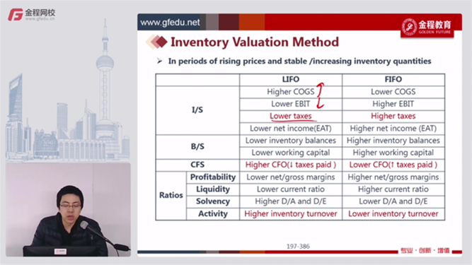 老师 老师说 tax on financial report will be lower for LIFO, 但 tax report 不变,under GAAP, 那我是否可以理解为这个表在CFA是适用的,至于 tax report 我们考试不用理。