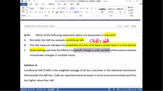 - 为什么不是C选项呢?credit risk是由于借款人违约未能偿还而使债权人遭受损失的风险;solvency risk是由于自己财务状况不佳而无法偿还到期债务的风险。二者紧密相连
