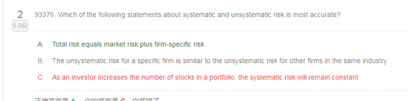 这道题的第三个选项为什么不对? 不是无论怎样增加股票的数量,能够分散的只有非系统性风险吗?系统性风险是不变的啊,讲义中的图不是这个意思吗?