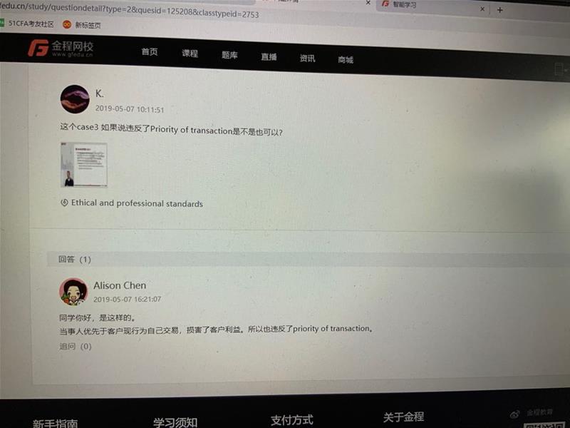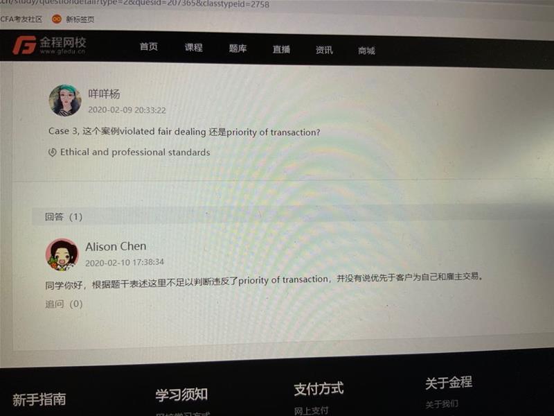 包含CFA一级传统在线课程、通关课程及试题相关提问答疑;