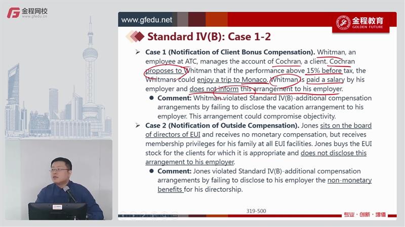 已回答请问老师可否再解释一下case2? 按照题干,我的理解是jones的雇主是EUI公司,然后这个公司没有给工资但是给了Jones可以使用该公司全球设施的特权,那么EUI公司是知道jones得到的好处的。jones没有向雇主披露的事情是他给他的客户买了EUI公司的股票,而不是没有给好处啊。为什么违反了addtional compensation呢? 感谢~