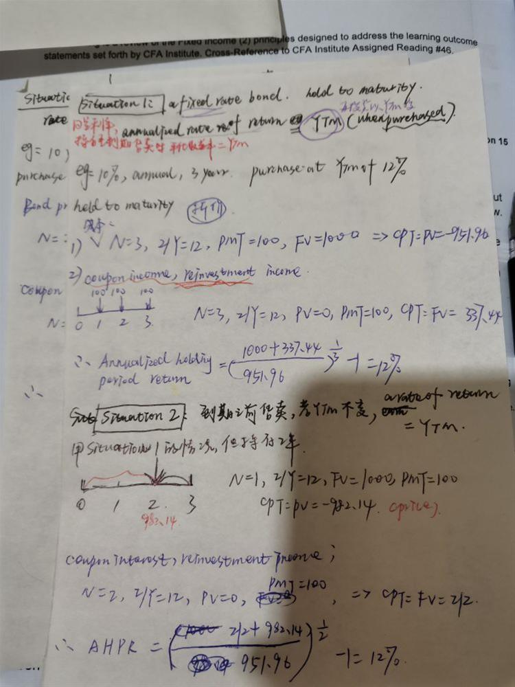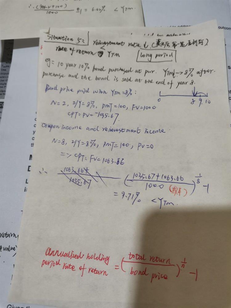 老师你好,我想问一下这个公式,就是下面图一的这个公式,这个bond price是债券的价格,上面的total return是总收益,那为什么第一张图例题里的bond price 是原价,第二张图例题的bond price不是1000,是折现后的价格呢?