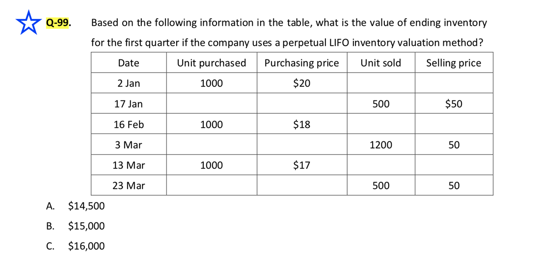 Q99的perpetual LIFO算Inventory老师好像算的是COGS?正确答案应该怎么算Inventory?