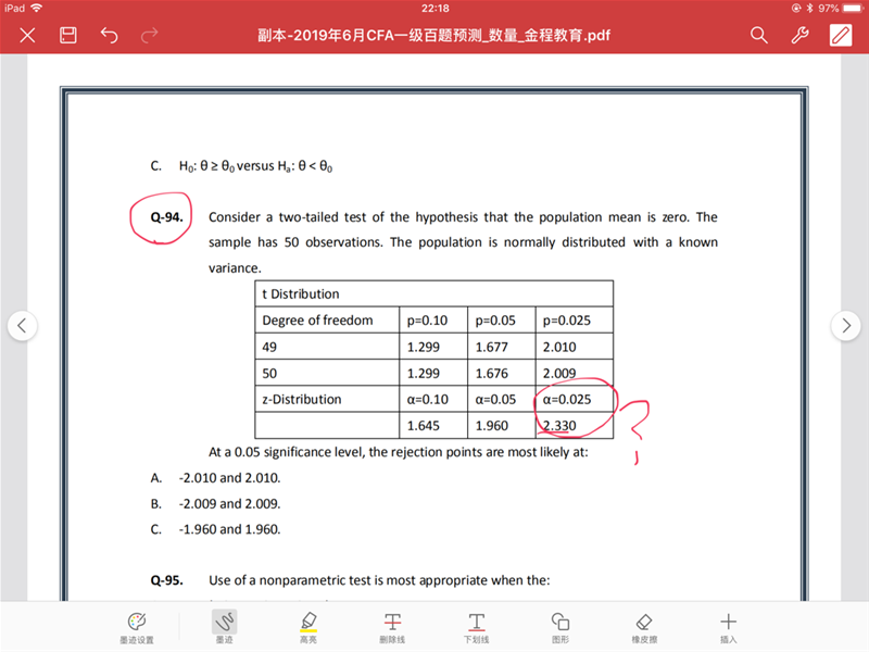 老师,不是双尾吗,为啥不用0.025下的那个值啊2.33啊