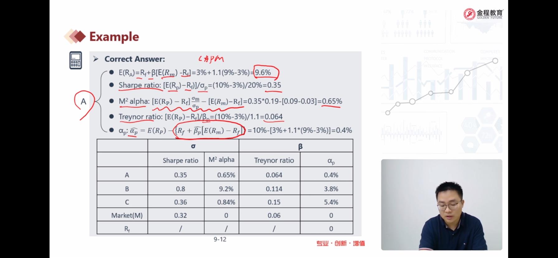 老师,这里求夏普比率时,为什么不用第一问算出的期望收益率减去市场收益率呢