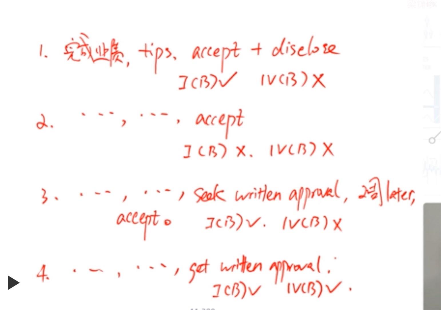 老师,为什么get 和seek written approval, 一个能符合IV(B),一个不能呢?不都是得到老板书面同意吗?