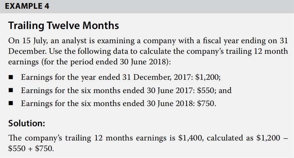 老师您好,请问例题里面的这个trailing 12 month是什么,怎么计算的呀?
