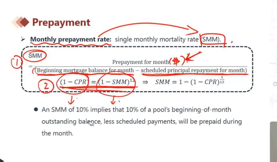 为什么这里的(1-CPR)【一年之后剩余的本金】=【第一个月之后剩余的本金】(1-SMM)的12次方而不是乘以12呢?