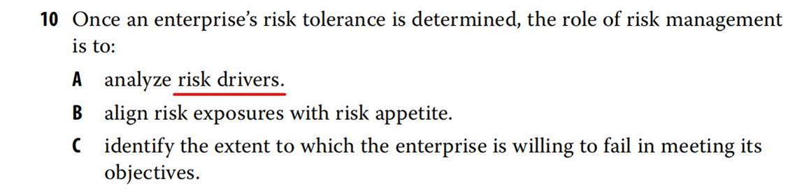 老师您好,这两题都提到的这个risk driver是什么呀?是在确定risk tolerance的时候考虑的吗?