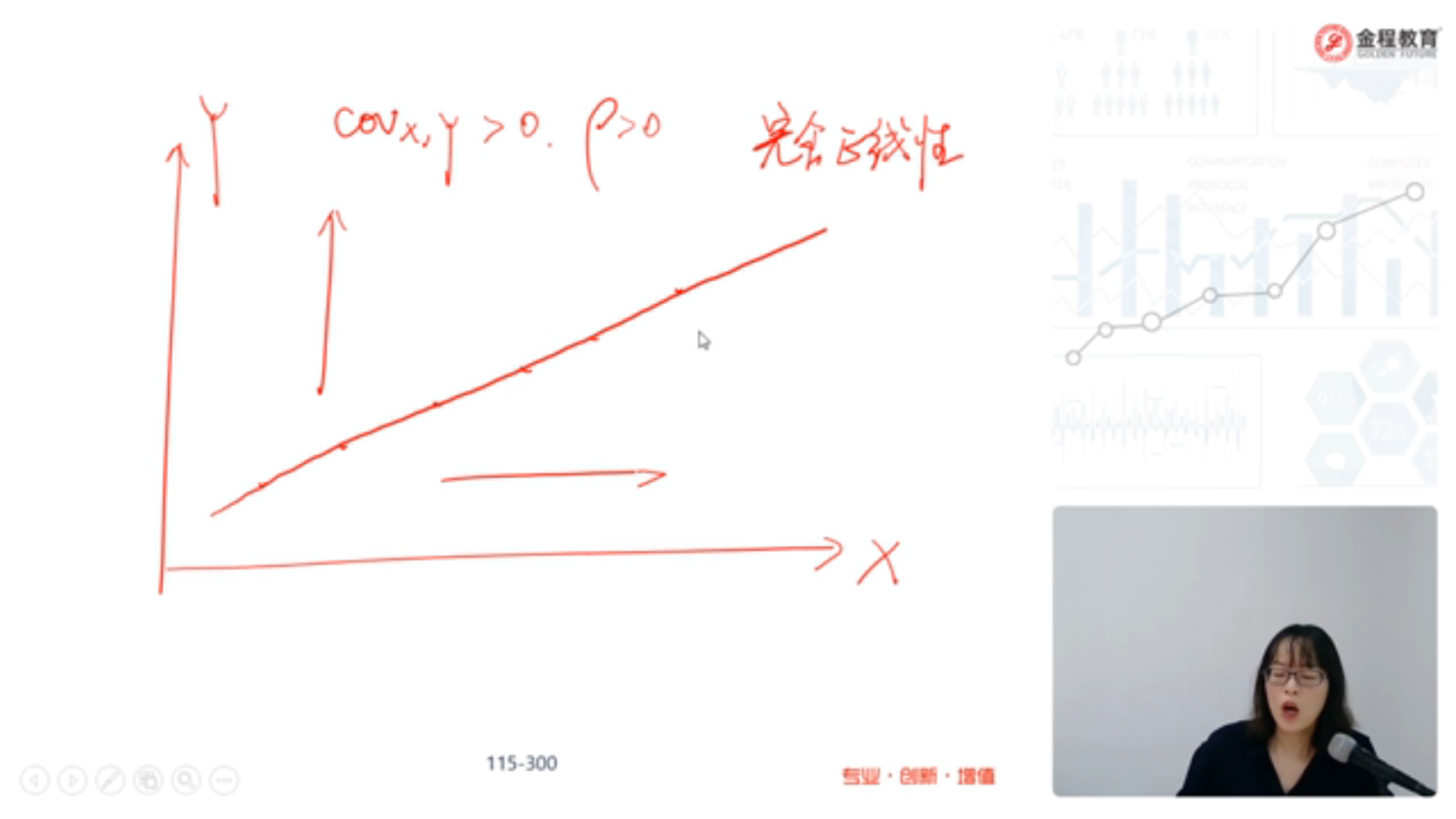 完全线性 rho为1 需要x与y的回归线是45度的吗