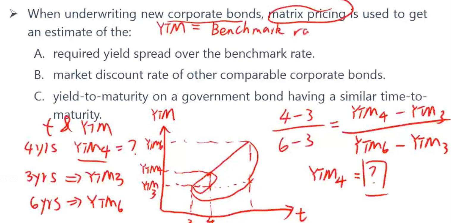 老师,这题的A选项:对于new corporate bond 他的YTM可以用市场上类似的其他公司债券估计,benchmark的话可以用到期日相同或者近似的国债预估,两者所得的差就是spread,是这个思路吗?