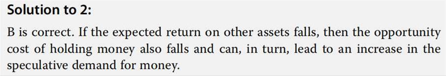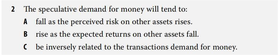 已回答老师您好,为什么(A选项)Speculative demand for money will tend to fall as the perceived risk of other assets rises这句话不对呀?其他资产的风险上升不就是returns会上升吗?