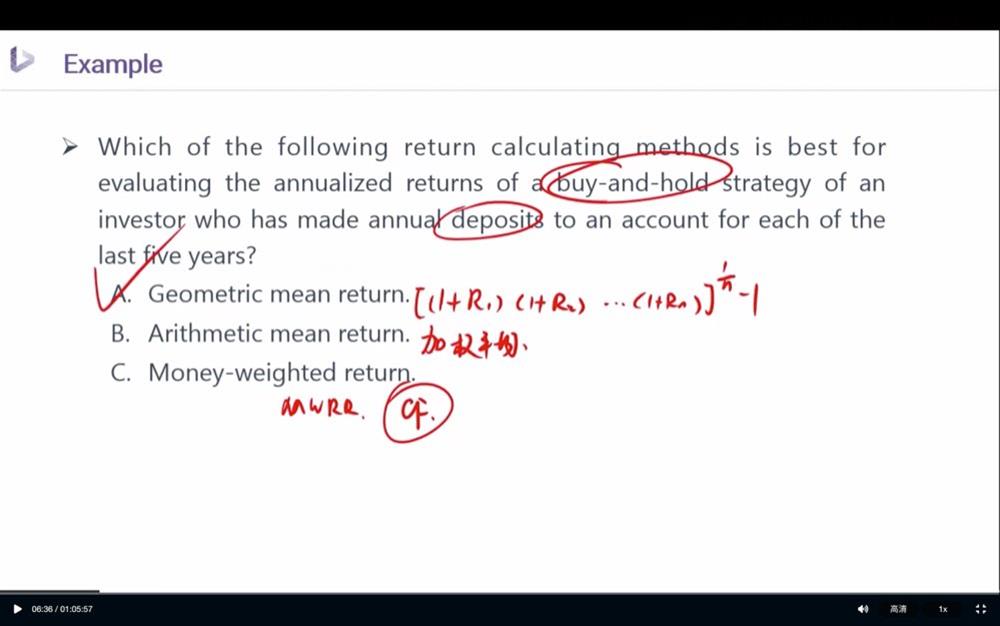 不明白C的解释,既然有期间CF,为什么不能用MWRR?