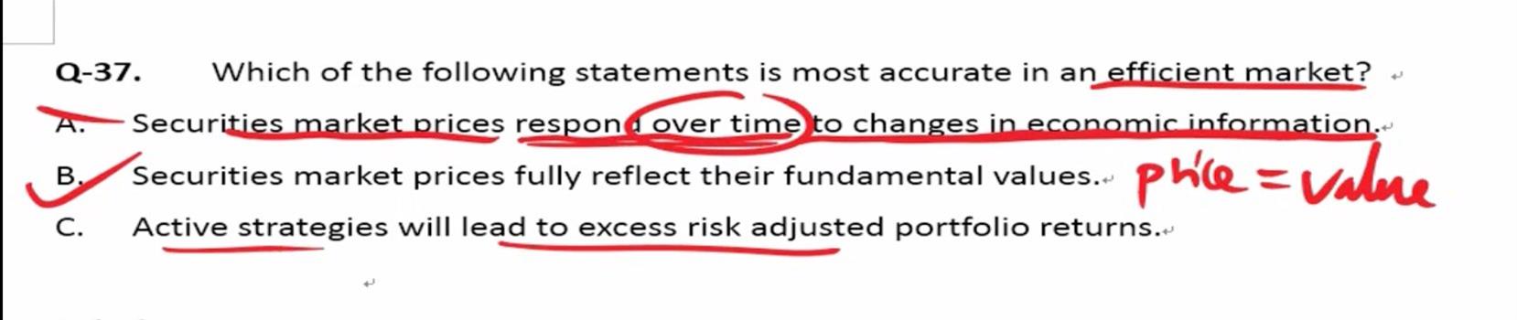 老师,在weak-form中,不是可以靠基本面分析获利吗?那么市场价格就没有完全体现其fundamental values,为什么B选项对呢?