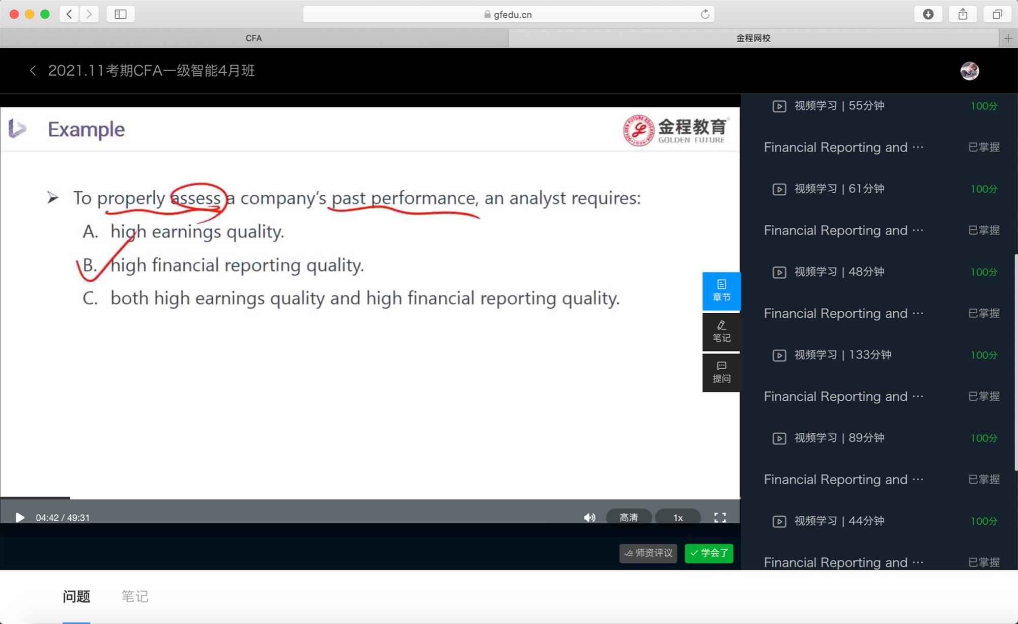 包含CFA一级传统在线课程、通关课程及试题相关提问答疑;