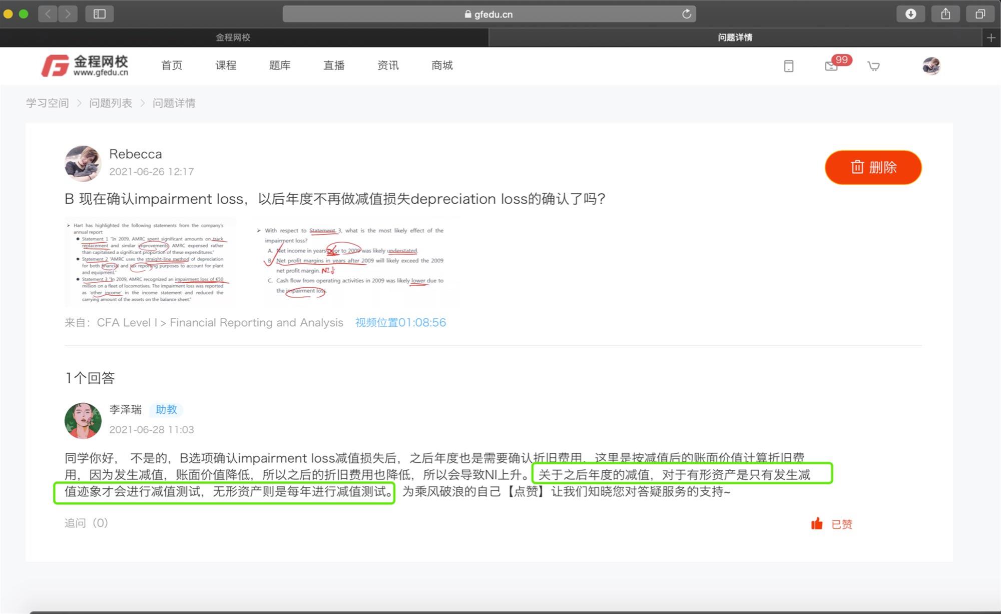 包含CFA一级传统在线课程、通关课程及试题相关提问答疑;