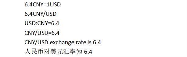 老师,这6行表达的都是一个意思对吧,就是6.4人民币能换1美元,有没有哪行是错误表达?麻烦老师纠正一下,谢谢。
