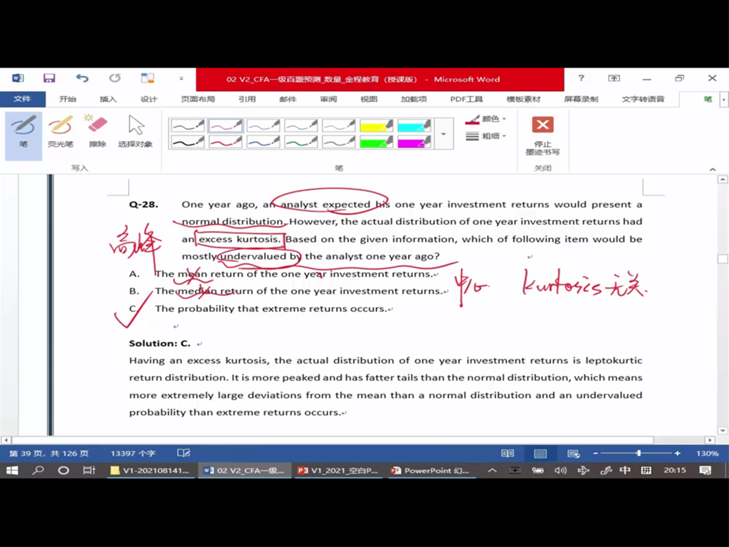 这也没说其他因素不变啊,而且假设是方差相等才有高峰肥尾一说,虽然这也只能选c
