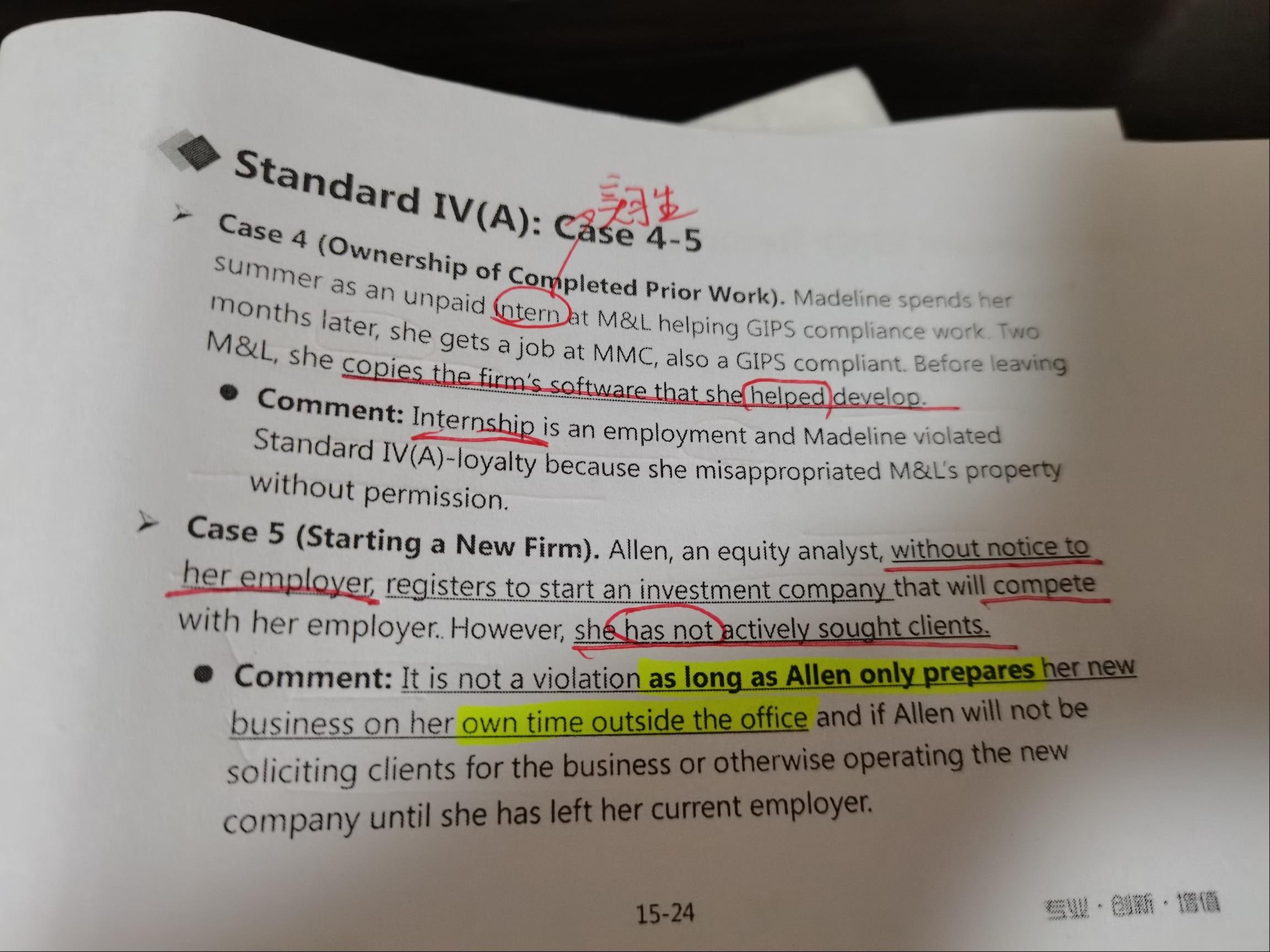 老师,这个cas5哪里体现了她是在私人时间和办公场所外准备自己成立新公司的事情啊?还有就是是不是只要开始engage了才用通知老板呢?但是这里不是已经register to start a company了嘛?这不就是已经成立了嘛?还有就是准备阶段需要通知老板征求老板同意嘛?