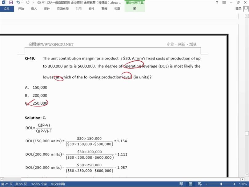 请问老师,本题在计算三个产量下的DOL的时候为什么FC都是600000呢?题干里面提到600000的那句是什么意思