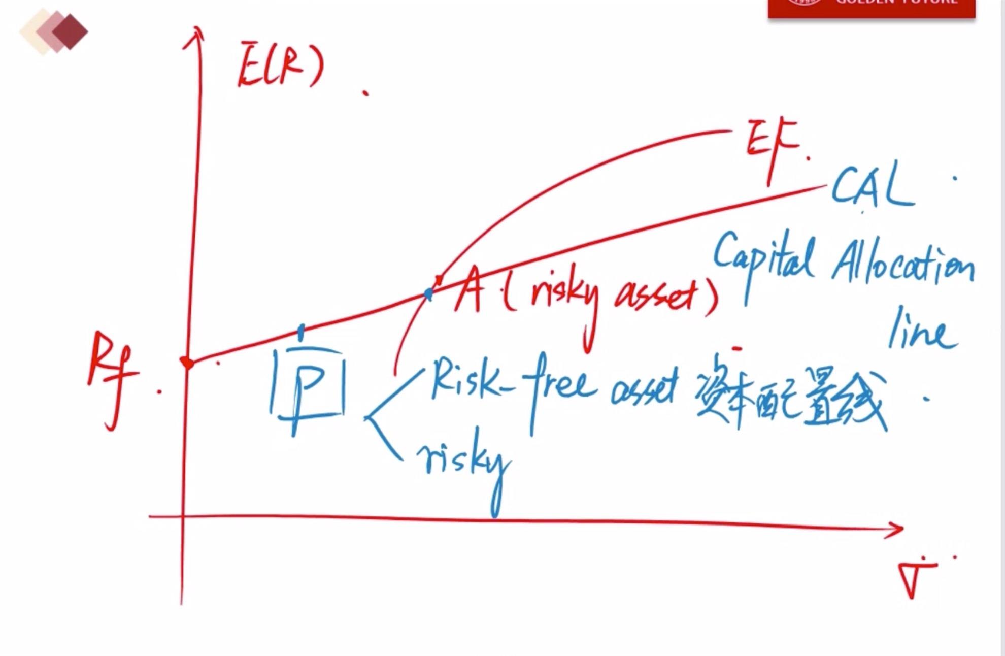 请问点P在CAL上,沿着直线Movement along是因为P点的risky asset 和risk free asset的weights配比不一样吗?
