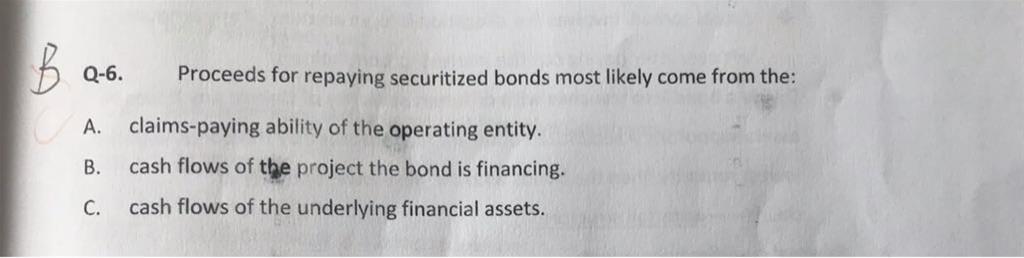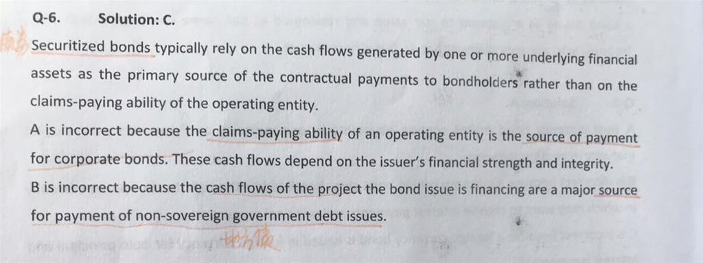 B为什么不可以?答案解析的意思是只有地方政府才能做项目融资吗?那和题目有什么关系,难道securitized bond特指国债?