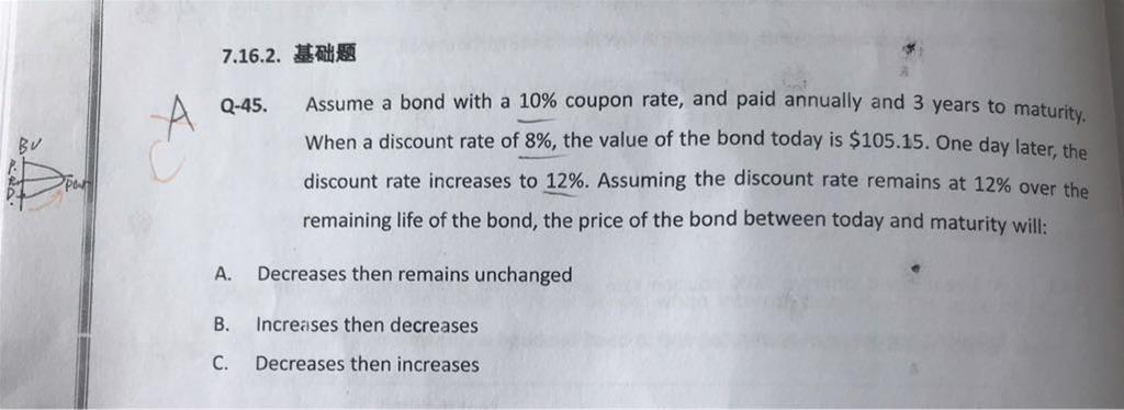 可以从另一个角度来理解吗:短期来看,利率风险由price主导,所以利率上升到12%导致目前Bond price下降。长期来看,利率风险由reinvestment主导,3年后由于YTM涨到了12%,所以Bond Price会上升?