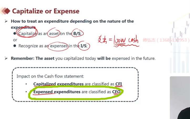 老师,问题1:这里费用化被归类为CFO的意思是不是说那些需要费用化的支出(Depr、维修费用、员工培训费用)全部属于CFO流出?问题2:那么这些属于CFO知识点中讲到的cash paid to employees and suppliers还是cash paid for other expenses?