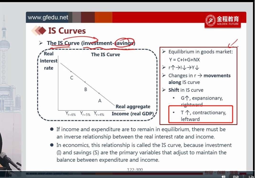 老师,IS曲线里,讲义中有T上升,contractionary, leftward. 这个T是什么啊?老师在视频中没有提过啊,也没讲这个关系。