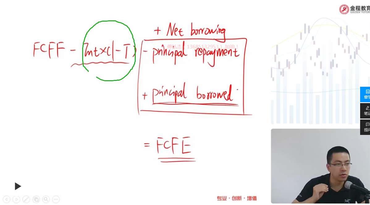 老师 求解答两个问题 1.请问这里通过FCFF计算FCFE的过程中,扣除需要支付给债权人的费用的时候,为什么Int后要乘(1-t)?难道公司支付给债权人的利息费用是税后金额吗,这个税不是由债权人拿到利息后自己去交吗? 2.为什么偿还的本金部分不用乘(1-t)?