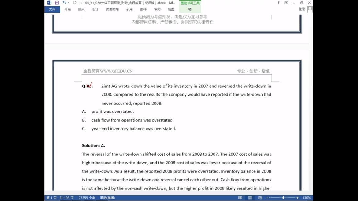 包含CFA一级传统在线课程、通关课程及试题相关提问答疑;