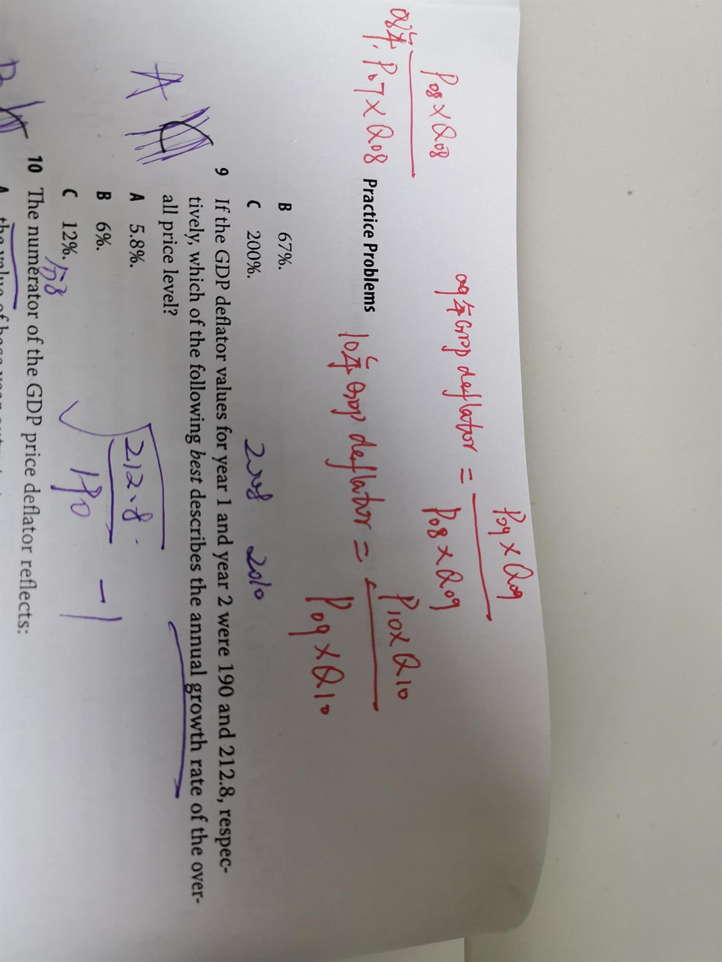 老师好,第九题为什么两个指数相除就能算出来价格水平的增长率