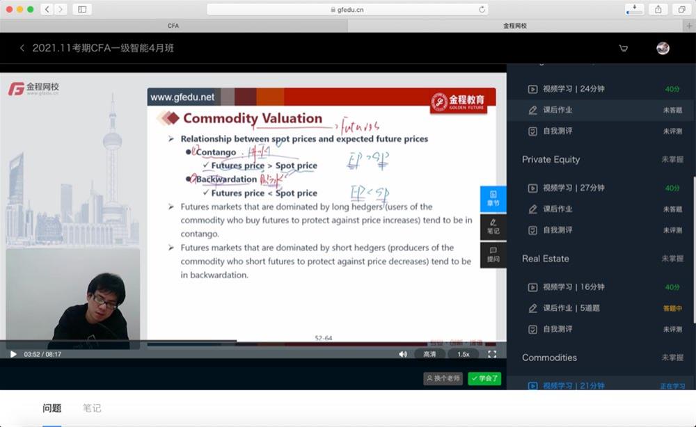 包含CFA一级传统在线课程、通关课程及试题相关提问答疑;