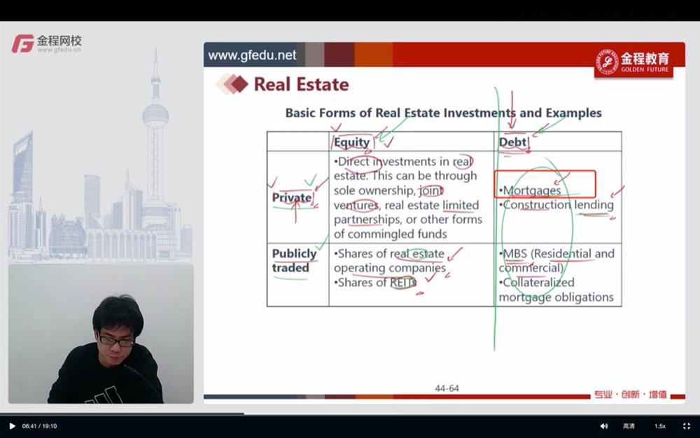 Private方面:Debt的mortgage不也是直接买房吗,只是说贷款买房,那和private equity的直接投资房地产有什么区别呢?