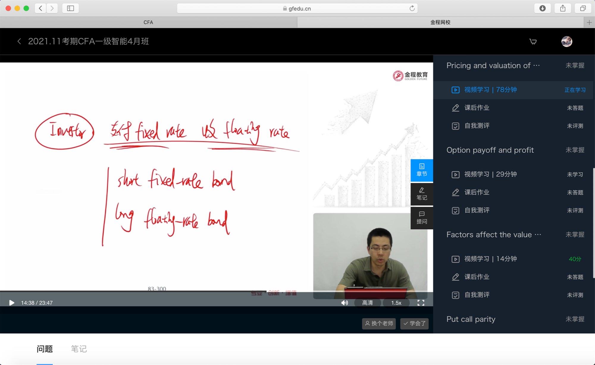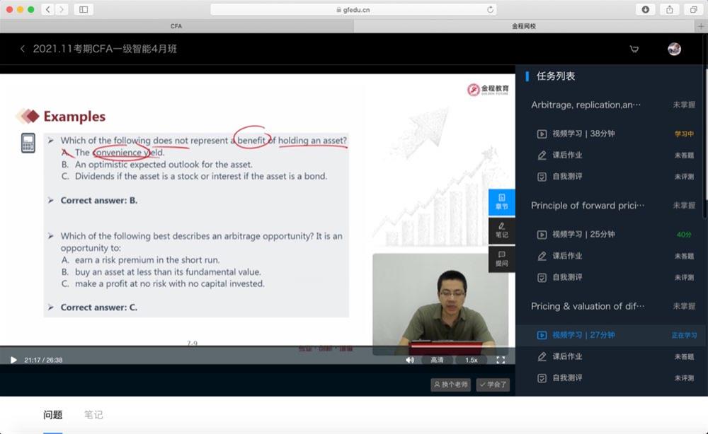 包含CFA一级传统在线课程、通关课程及试题相关提问答疑;