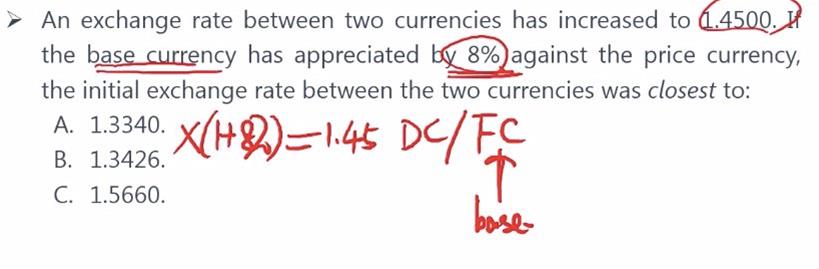 这道题DC/(1+8%)FC=1.45,可以写成[DC/FC]*[1/(1+8%)]=1.45,那么原汇率是1.45*1.08才对?