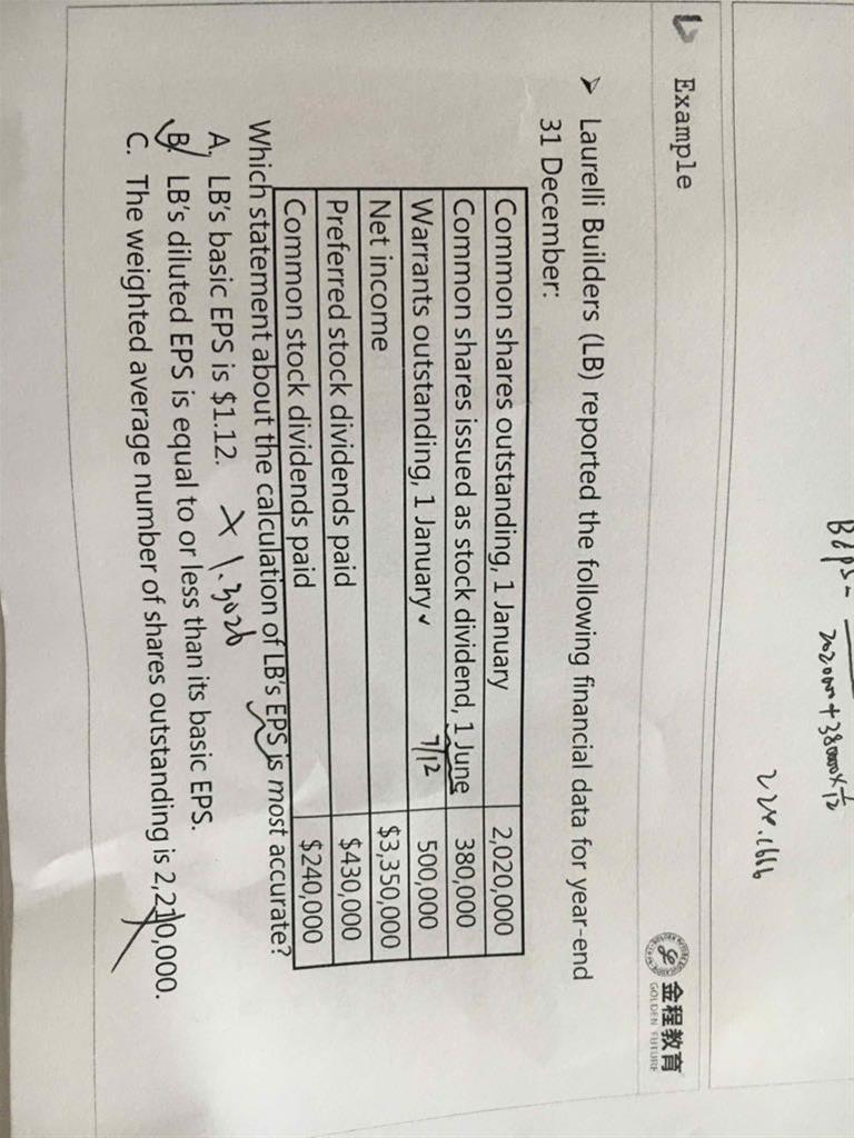 老师,这题计算bEPS是不是有问题呀?还有讲解当中打问号的部分怎么理解呢?