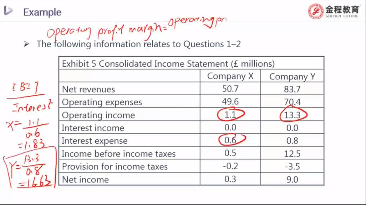 老师,这个地方如果interest income对应数值都不是0, 我们计算时要怎么调整?