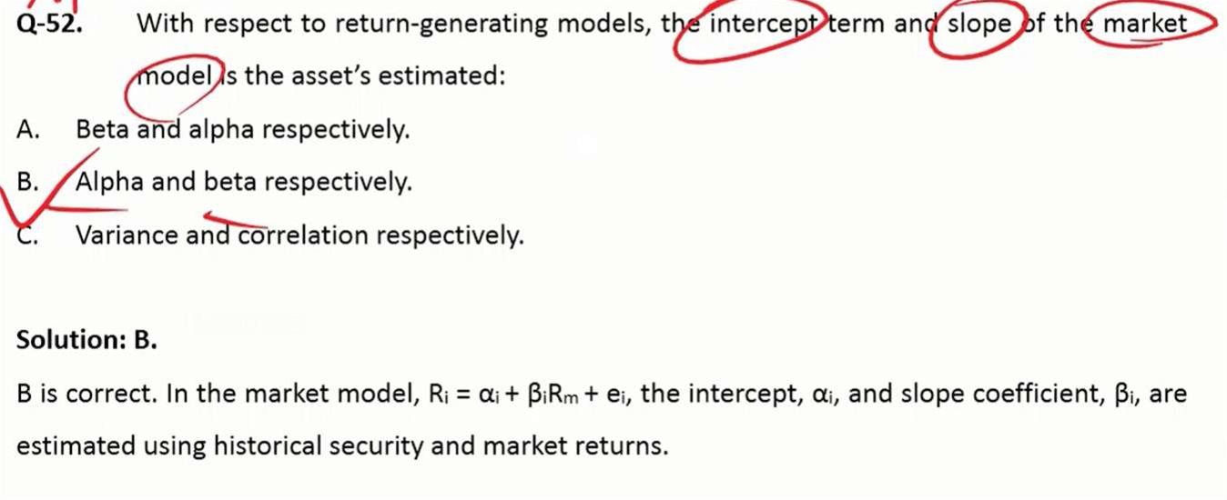 第52题,什么是Return-generating models? 横纵坐标是什么?CAPM的横坐标是贝塔,为什么本题斜率是贝塔?