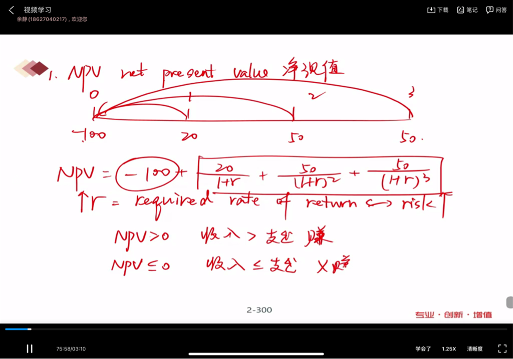 风险越高,要求回报率投资者要求更高,这样不就导致Npv越小吗?这不就矛盾了吗