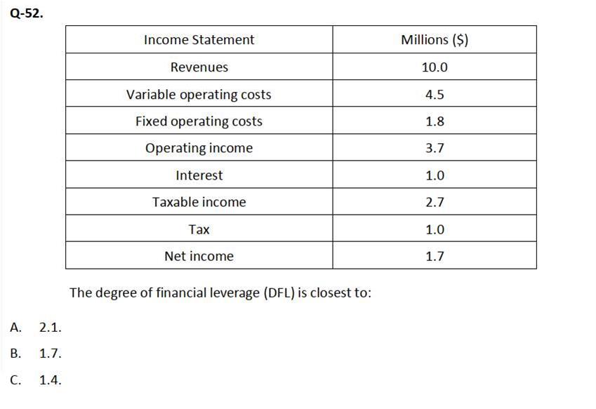 第52题,根据定义,EPS=NI/股票数,NI=EBIT-I-T,代入DFL的定义式,为什么DFL=EBIT/EBIT-I,而不是EBIT/EBIT-I-T ?